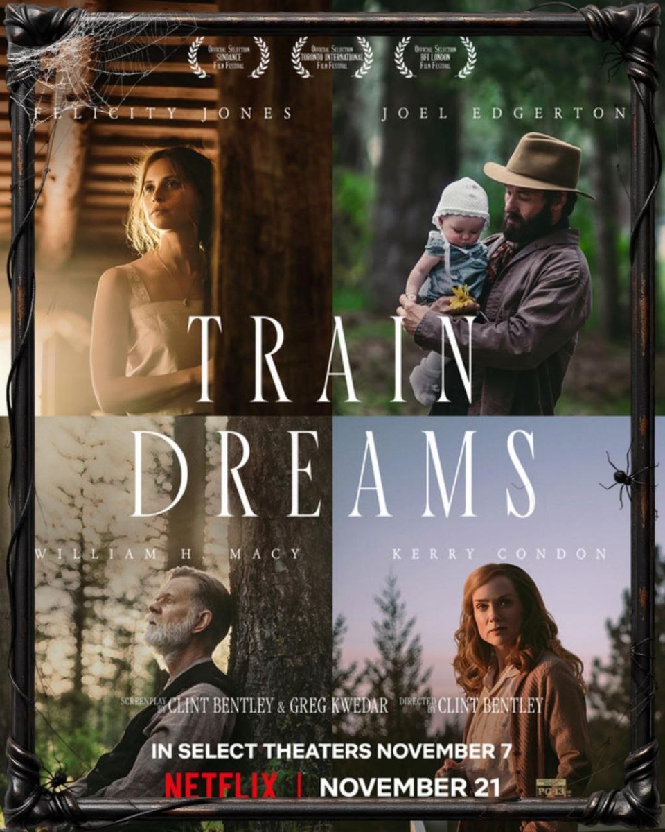 Экранизации повести «Train Dreams» финалиста Пулитцеровской премии по художественной литературе —Дениса Джонсона. Очень честный и трогательный фильм. Печальный, но не безнадёжный. Понравится, если любите такие фильмы как «Патерсон» Джармуша или «Весна, лето, осень, зима… и снова весна» Ким Ки Дука. Он о том, что как только что-то начинаешь понимать о жизни - тебе обычно, уже пора уходить. О том, что мечты не всегда сбываются. О том, что многие люди всю жизнь ждут того, кто не придёт. О том, что жизнь мало похожа на фильмы производства Болливуда, а иногда даже и Голливуда. Но при этом здесь есть что-то щемящее, неуловимое, непонятное. То, чего стоит целая жизнь. Я говорю про Любовь. Ты можешь с ней расцвести и засохнуть, Она сожрет тебя, как цветок тля. Но все равно лучше уж так сдохнуть, Чем никого никогда не любя. #дельфин #сны_поездов #кино