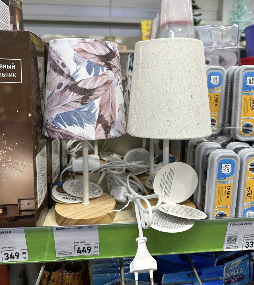 Я вот углядела новые лампы настольные. Очень кстати приличные! Мне понравились. Работают от сети. Кнопка включения на проводе. Они небольшие, но симпатичные. Представлены в ассортименте. Отлично впишется в любой интерьер, будет красиво смотреться на прикроватной тумбе или на комоде. Размер 13х13х29 см. Производитель Китай. Цена 449 рублей.