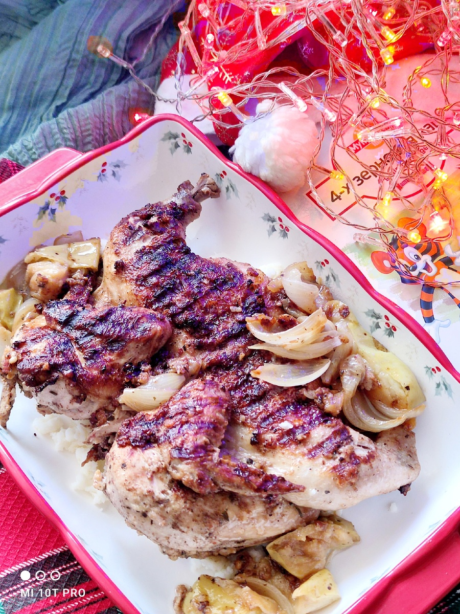КУРИЦА-ГРИЛЬ в овсяно - чесночной панировке готовим по рецепту Людмилы Людмила Югай 👍Небольшое дополнение к знакомому рецепту, меняет блюдо в лучшую сторону. Например, панировка в овсяной смеси от Myllyn Paras "4-х зерновая" и на столе вкусная курица с хрустящей корочкой , с ореховым вкусом. Да, да, панировка при жарке приобретает красивую корочку и , как ни странно, ореховый вкус. На 1 кг. курицу нам потребуется 2 ст.л. сухой смеси каша "4-х зерновая", по вкусу специи - 1 ст.л. смеси "Супер гриль", 1 ст.л. сушёного чеснока с чёрным перцем , 1 ч.л. сушёного базилика, соль по вкусу. Смешать специи и смесь каши. Курицу вымыть, обсушить, разрезать по грудке, слегка отбить. Натереть солью, оставить на 10 минут. Затем натереть смесью со всех сторон. Оставить на 1-3 часа. Жарить с обеих сторон на растительном масле , огонь ниже среднего, по 10 -15 минут . ✌Затем добавить четвертинки луковиц и дольки яблок, довести до готовности курицы , на самом минимальном огне. При прокалывании грудки (в