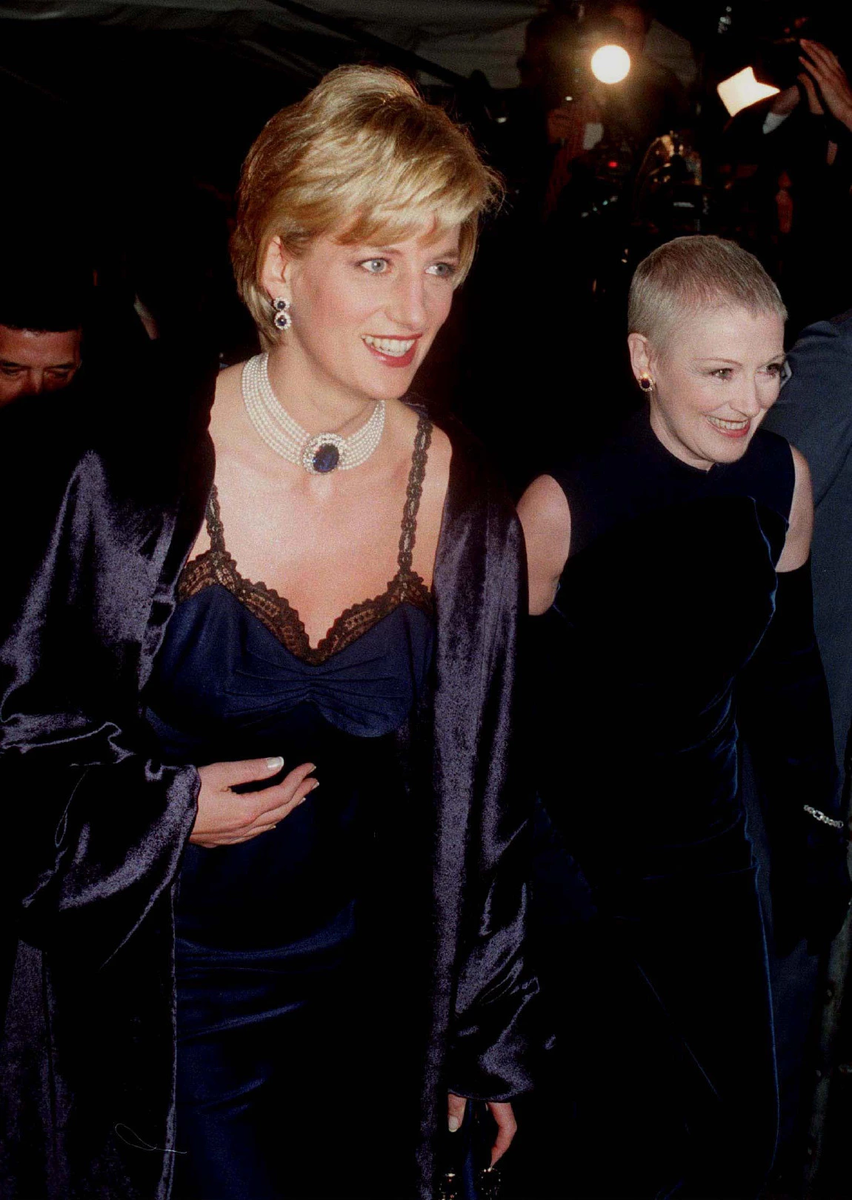 Диана надела темно-синее платье от Гальяно в бельевом стиле.