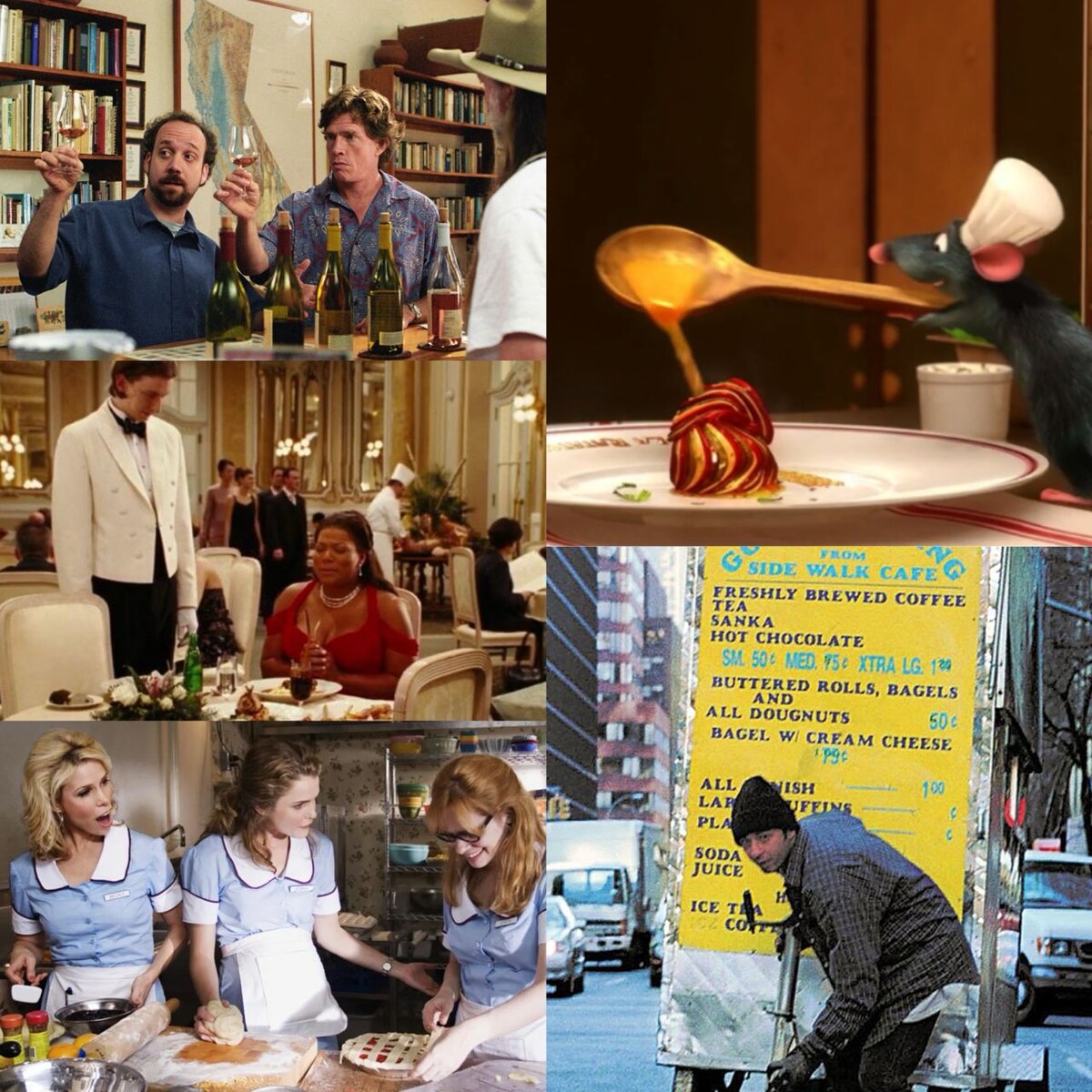 Часть 3 На обочине, 2004 год Фильм про двух друзей с большими, но разными проблемами, отправившихся в путешествие по калифорнийским винодельням. Шикарная драма и отличная реклама американского вина. Человек с тележкой, 2005 год Невеселая жизнь иммигранта из Пакистана, торгующего кофе и пончиками после 11 сентября. Последний отпуск, 2006 год Джорджия узнает, что у нее опухоль мозга, берет все свои накопления и отправляется в Швейцарию, где наслаждается жизнью, шикарной едой и заражает своей энергией других. Официантка, 2007 год Пирог как спасение – для официантки Дженны, которая несчастлива в браке и ещё больше несчастлива узнать о своей беременности. Рататуй, 2007 год Не нуждающаяся в представлении лента, одна из главных картин про еду и уж точно главный мультфильм на тему. Всегда можно пересмотреть еще раз. Джули и Джулия, 2009 год Спорный с художественной точки зрения, но важный в плане утверждения профессии кулинарного блогера фильм о девушке, решившей воспроизвести все рецепт
