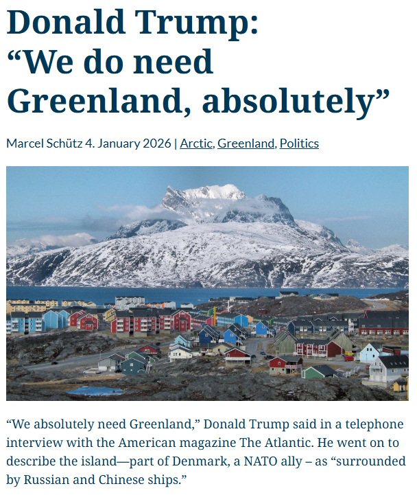 О новых заявлениях Трампа Остров в Арктическом регионе не дает покоя американскому президенту. Дональд Трамп, выступая перед журналистами, заявил, что Соединённым Штатам необходима Гренландия «с точки зрения национальной безопасности». 🔻Что там сказал Трамп? 🔸4 января Трамп подтвердил заинтересованность Вашингтона в установлении контроля над Гренландией, заявив, что США «абсолютно нуждаются в Гренландии». 🔸По его словам, воды вокруг острова «заполнены российскими и китайскими кораблями», и Дания не сможет обеспечить его защиту самостоятельно. 🔸Трамп также добавил, что Европейскому союзу нужно, чтобы остров контролировали США. 🔸Откуда такой интерес? Географическое положении Гренландии действительно можно назвать стратегическим. Во времена Холодной войны американцы размещали там свои стратегические бомбардировщики, которые по прямой оттуда очень быстро могли достигнуть СССР. 🔸А если вспомнить об имеющихся запасах тех же редкоземельных ресурсов, то понимание интереса Трампа становит
