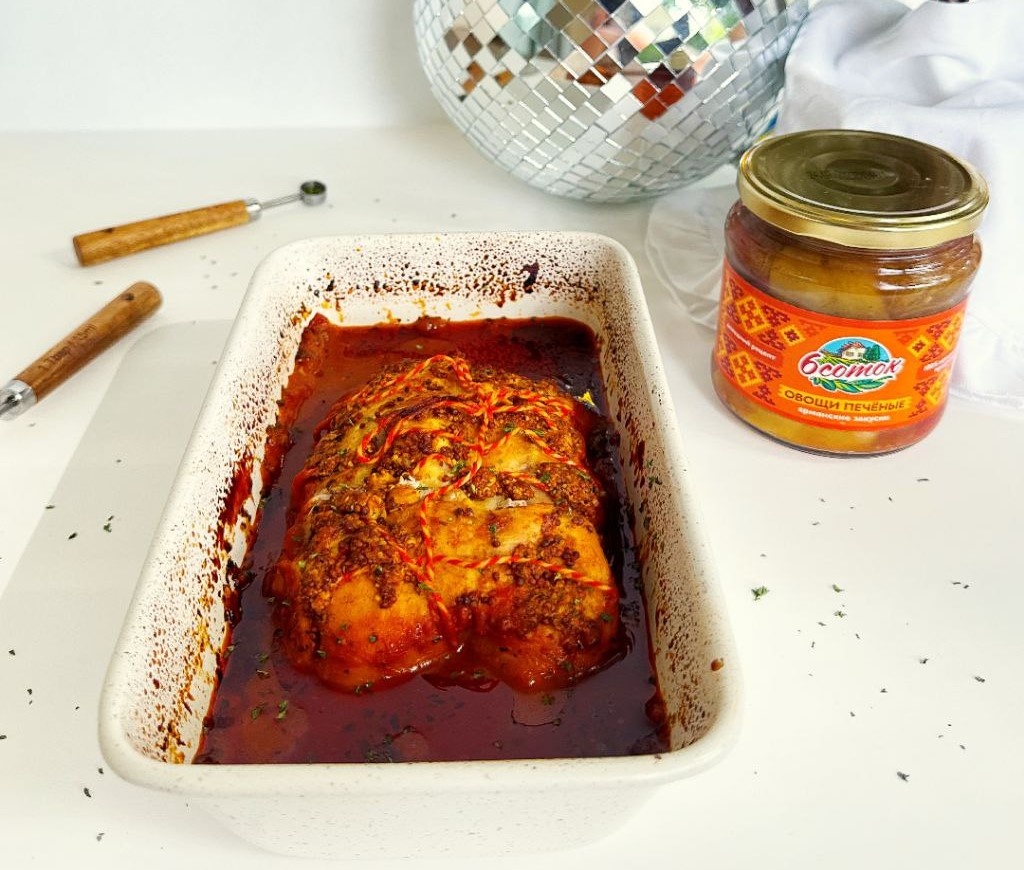 В светлый праздник Рождества хочется собрать за столом самых близких и угостить их чем-то особенным. Эта томленая индейка — идеальное горячее блюдо, которое готовится практически без вашего участия, но получается невероятно вкусным и праздничным. Секрет сочности и легкого аромата дымка — в наших печеных овощах «6 соток». Они создают для мяса насыщенную и ароматную подушку, отдавая ему все свои соки. • Филе индейки — 600 г