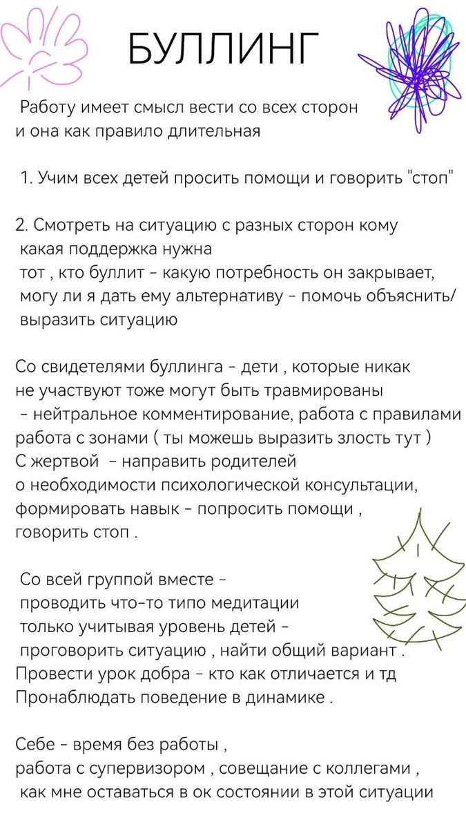 ! Сделала карточку про то как работать с буллингом в группе — важно , что в буллинге задействована вся группа (и тот, кто и тот, кого и вы как педагог).