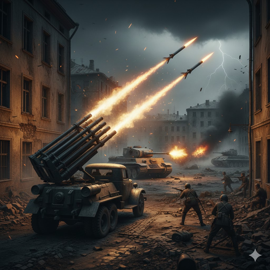 💥 Огневой вал: «Катюша» не была снайперским оружием. Она создавала огненный вал, способный накрыть целые кварталы. В условиях города это означало, что укрыться от нее было практически невозможно. Разрушительная мощь фугасных снарядов превращала здания в руины, погребая под обломками живую силу и технику.