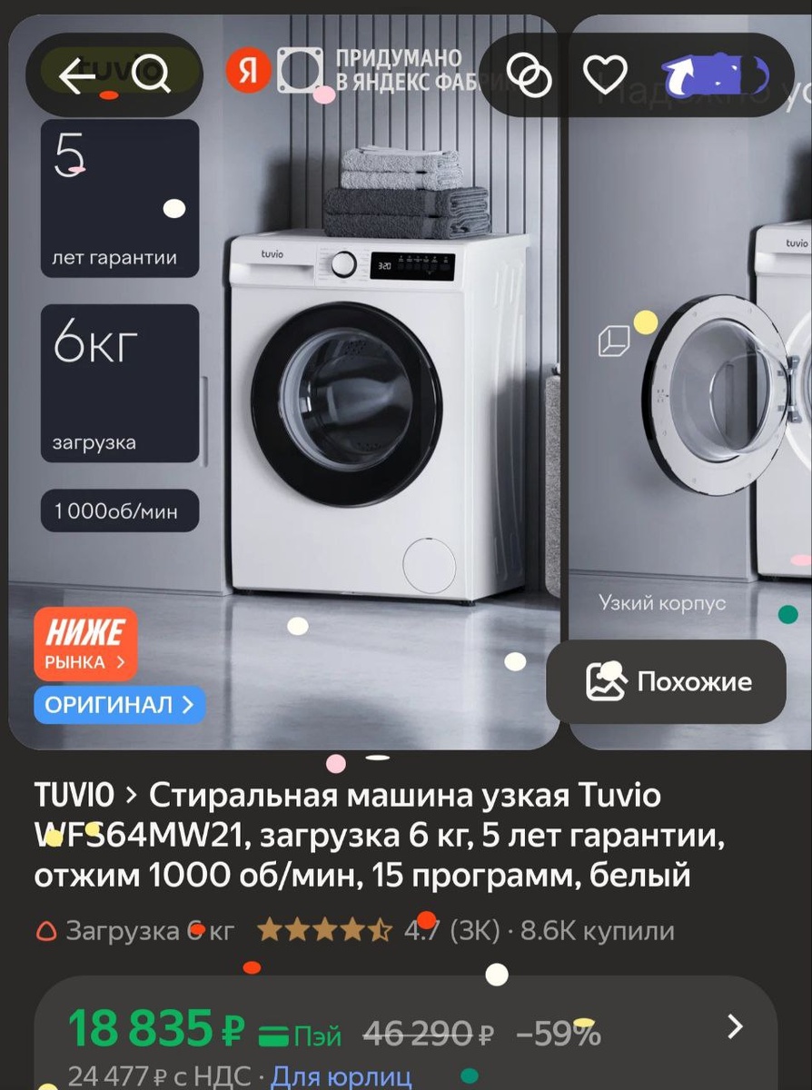 π»Π‘ΡΠΈΡΠ°Π»ΡΠ½Π°Ρ ΠΌΠ°ΡΠΈΠ½Π° ΡΠ·ΠΊΠ°Ρ Tuvio WFS64MW21, Π·Π°Π³ΡΡΠ·ΠΊΠ° 6 ΠΊΠ³, 5 Π»Π΅Ρ Π³Π°ΡΠ°Π½ΡΠΈΠΈ, ΠΎΡΠΆΠΈΠΌ 1000 ΠΎΠ±/ΠΌΠΈΠ½, 15 ΠΏΡΠΎΠ³ΡΠ°ΠΌΠΌ, Π±Π΅Π»ΡΠΉ - 18 835Ρ (Ρ.ΠΏΡΠΉ