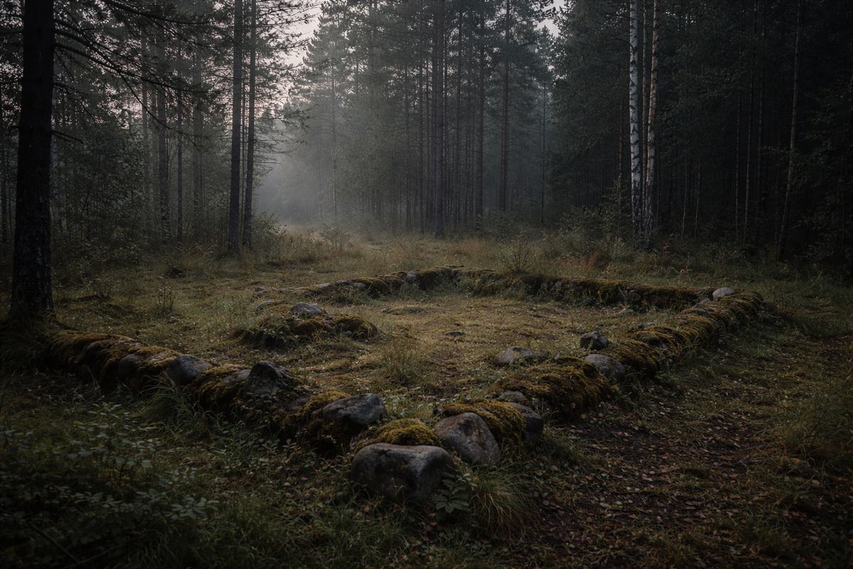 Лес сей не кажется диким. В нём нет бурелома, нет резких запахов гнили. Но есть чувство, что тропы повторяются, хотя я шёл разными путями. Я трижды выходил к одному и тому же валуну, отмеченному мхом.