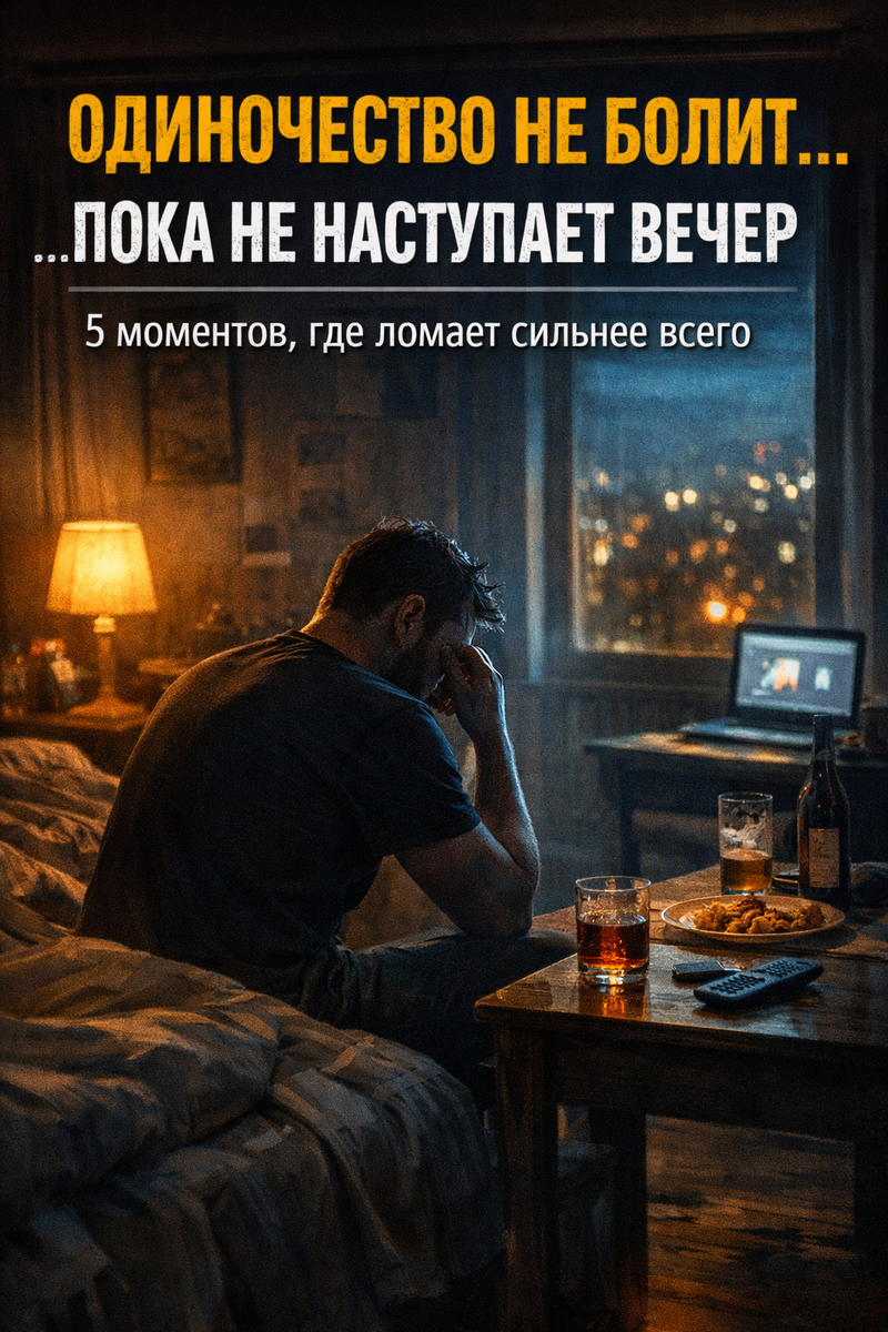 А вечером — будто кто-то выключает фоновые звуки и остаёшься один на один с тишиной. Самое мерзкое: одиночество редко бьёт в лоб. Оно работает как сырость. Сначала “да пофиг”, потом — “что-то пусто”, потом — “почему я вообще так живу”. Вот 5 вечерних моментов, где обычно ломает сильнее всего — и что делать, чтобы не проваливаться в эту яму. Ты снимаешь куртку, ставишь ключи, и всё.