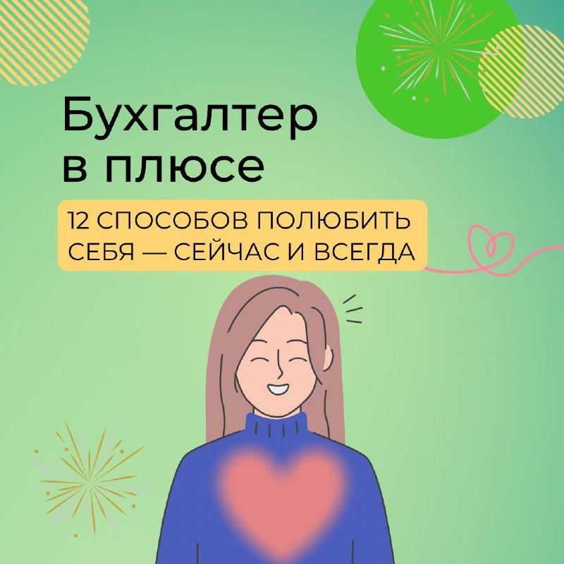 Дорогие бухгалтеры! Новогодние каникулы могут стать началом нового отношения к себе. Иногда мы забываем любить себя, отдаём все своё внимание и заботу работе, детям, партнеру и близким родственникам, коллегам. В гармоничных отношениях так не может быть. Но сейчас тот самый момент, когда можно начать по другому. Вот 12 способов полюбить себя от известного психолога Луизы Хей: • Прекратите любую критику. Критика никогда ничего не изменит. Перестаньте критиковать себя. Примите себя такими, как есть. Все меняются. Когда вы критикуете себя, ваши изменения становятся нега- тивными. Когда вы одобряете себя, ваши изменения становятся положительными. • Прощайте себя. Отпустите прошлое. В свое время вы сделали лучшее, что смогли, используя понима- ние, осознание и знания. Теперь вы растете, меняетесь и будете жить другой жизнью. • Не пугайте себя. Прекратите терроризировать себя своими мыслями. Так жить ужасно. Найдите ментальный образ, который доставляет вам удовольствие, и немедленно пер