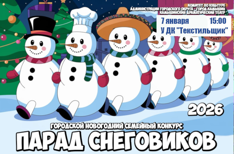 Парад снеговиков откроется 7 января в 15:00 на площади перед ДК «Текстильщиков». Напомним, что победителей и призеров ждут денежные призы: I место — 5 тыс. руб., II место — 4 тыс. руб. и III место — 3 тыс. руб. Специальный приз за самого большого снеговика составил 4 тыс. руб.