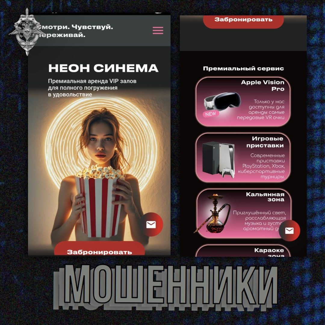 ➡️Премиальный кинотеатр в который всегда есть билеты и даже можно арендовать зал для свидания — классическая приманка для фишинга в