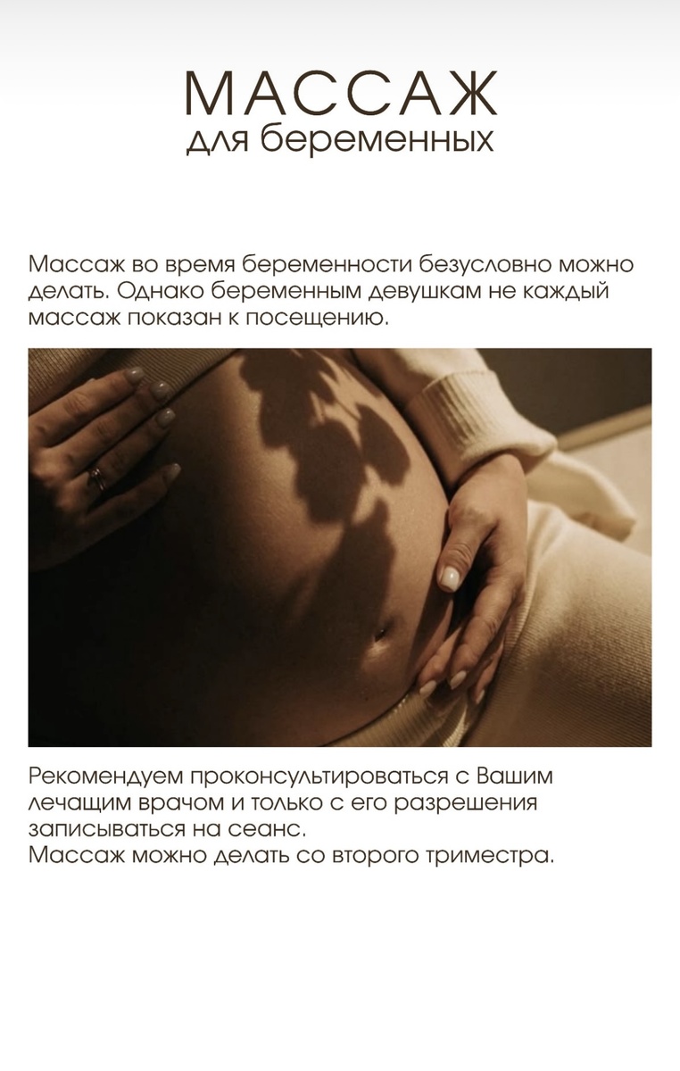 Рекомендуем проконсультироваться с Вашим лечащим врачом и только с его разрешения записываться на сеанс. Массаж можно делать со второго триместра беременности. Массаж можно делать в позе лежа на боку, спине или сидя. На животе лежать категорически запрещается. Также в каждой студии есть специальная подушка для вашего комфортного сеанса массажа. Допускается массаж шейно-воротниковой области, головы, лица, рук и ног… Массаж во время беременности полезен и женщинам, массаж полезен малышу! Процедура усиливает циркуляцию крови, что способствует лучшему насыщению клеток кислородом. Приятные, расслабляющие движения снимают усталость, стресс, восстанавливают эмоциональное состояние женщины. 💛💛💛 Наш сайт: https://spa-relsy.ru Мы в ВК: https://vk.com/relsy_nvrsk Студия ул. Шевченко, 22 (центральный район): +7 918 178 99 11. Студия ул. Мурата Ахеджака, 3 (южный район): +7 918 978 99 11. Записаться онлайн: https://n1250006.yclients.com 💛💛💛