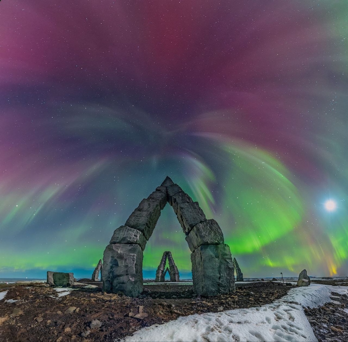 В последние дни над Арктическим Хенджем в Исландии развернулось невероятное световое шоу, вызванное вспышками на Солнце