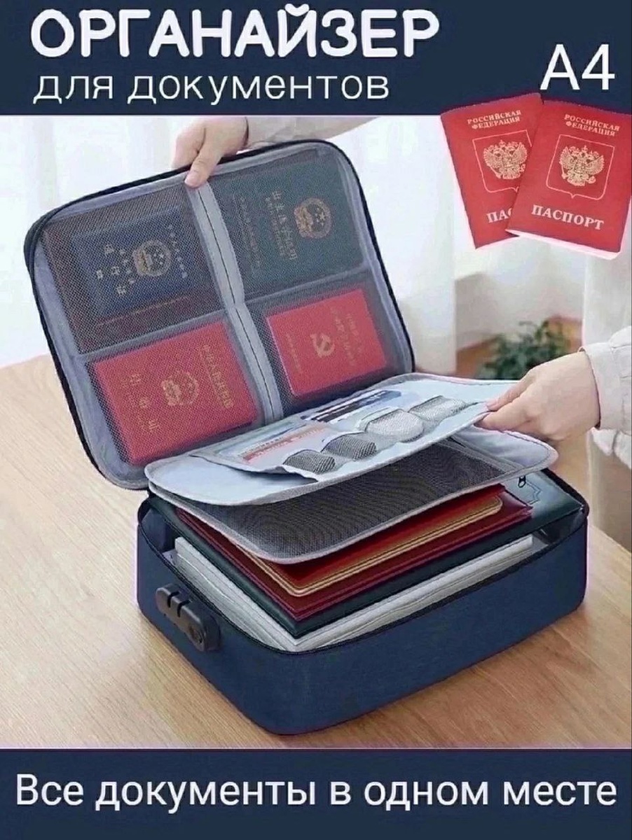 +🚚 Органайзер для хранения документов Цвет Синий, Черный, Серый Прекрасный помощник в организации хранения! Удобный органайзер для документов позволит хранить все важные бумаги и записи в одном месте. Он идеально подходит для хранения документов формата А4 и обеспечивает прекрасную защиту от загрязнений и повреждений.Органайзер — это незаменимый аксессуар для тех, кто ценит порядок. С помощью этого органайзера для документов вы сможете легко классифицировать все бумаги и быстро найти необходимые документы. Удобные отделения позволяют разместить как большие папки, так и мелкие записочки.Этот органайзер для документов станет вашим верным спутником в деловой жизни. С его помощью вы сможете сохранить порядок на рабочем месте или в домашнем офисе. Кроме того, он отлично подойдет для поездок — вы сможете взять с собой все необходимые бумаги без риска потерять что-то важное.Сумка для документов изготовлена из прочного материала