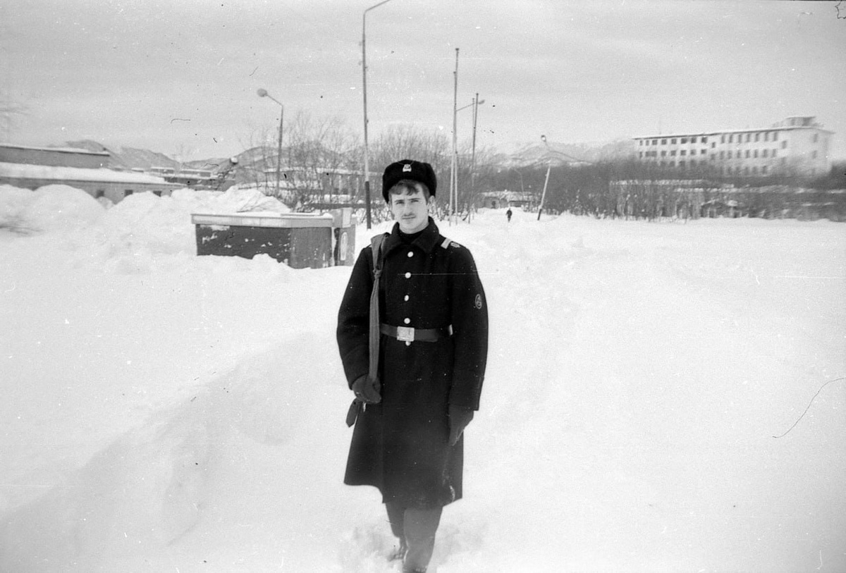 Матросы Тихоокеанского флота в Вилючинске фотографируются для дембельского альбома, 1990 год