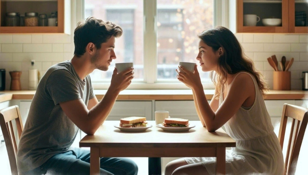 Михаил доедал второй бутерброд и запивал его кофе, когда Юля сама пришла к нему на кухню. Она села напротив, подперла щеку ладошкой и молча смотрела, как Миша жуёт. Девушка выглядела довольной и спокойной.