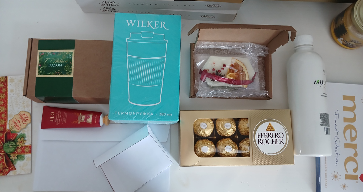 Предлагаю заглянуть под чужие елочки и рассмотреть подарки.🎄🎄🎄 Начну с себя, а вы продолжайте в комментариях. 😊 Я настолько устала расхламляться, что уже не хочется лишних вещей в доме - не надо никаких подарков. Тем не менее, подарки дарят. С одной стороны, это хорошо, внимание, забота и прочие приятные вещи, с другой стороны - иногда приходится думать ,куда ненужный подарок деть. Дома мы очень скромно и минималистично друг друга поздравили. Из материальных подарков: термокружка (очень красивого бирюзового цвета, подарили на работе). Недавно продала такую же белую, тоже дарили. С этой пока не знаю что делать. У меня есть две отличных термокружки - Contigo американская и Tefal, вроде бы и не нужно больше. большой крем для рук с дозатором - расходник, выиграла в праздничной лотерее на работе, и еще маленький крем для рук приятная коробочка с чаем и мини-маршмеллоу классный подарок - ароматическая плитка -аромасаше, паааахнет 😇 положила ее в шкаф с постельным бельем. Красивый, аро