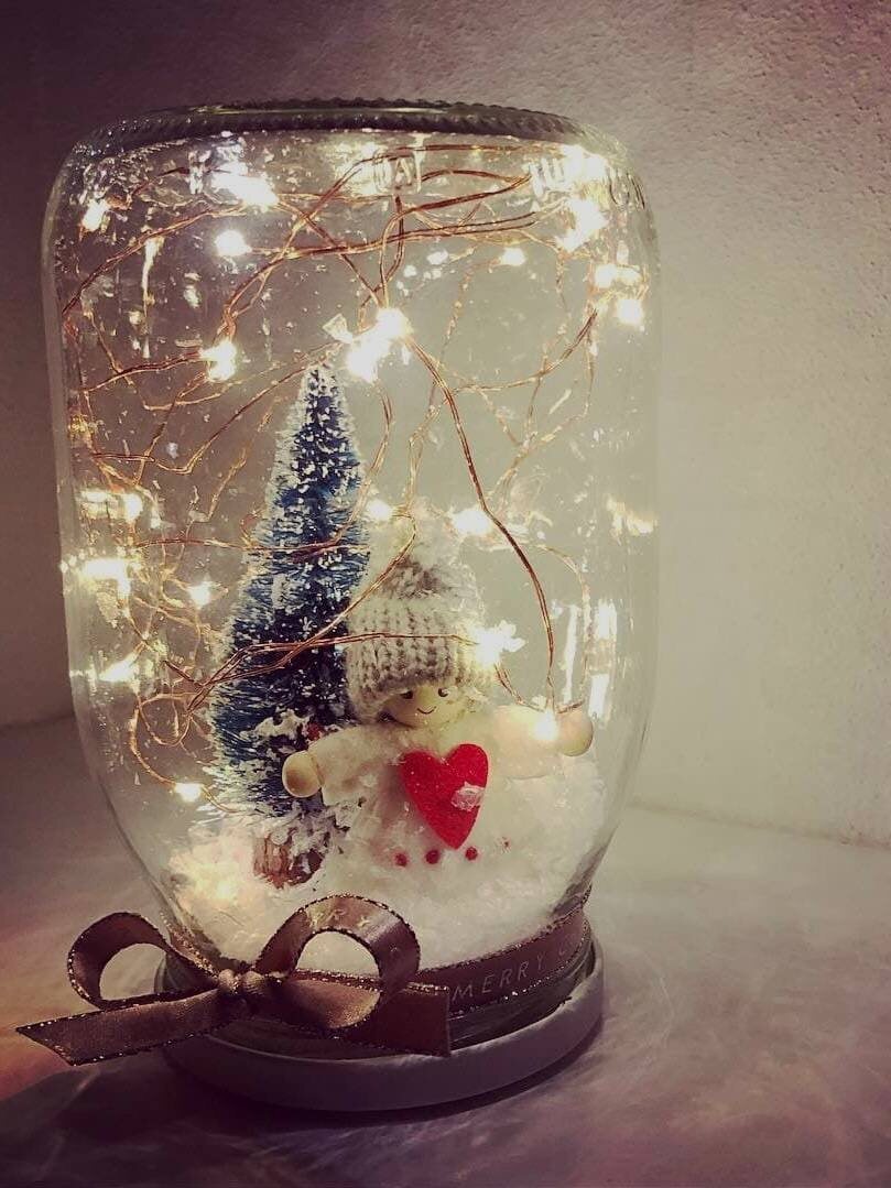 Сияющие DIY-снежные шары Понадобится: 🤍 стеклянная банка с крышкой 🤍 маленькие фигурки (ёлки, домики, люди — всё, что создаёт настроение) 🤍 блёстки (мелкие выглядят аккуратнее) 🤍 вода 🤍 аптечный глицерин 🤍 мини LED-огоньки на батарейках 🤍 прозрачный клей или клеевой пистолет. 1. Подготовка Приклейте фигурки к внутренней стороне крышки. Дайте клею хорошо схватиться — это важно, чтобы композиция не всплывала. 2. Снегопад Наполните банку водой почти до верха. Добавьте глицерин в пропорции 1 часть глицерина на 3–4 части воды. Чем больше глицерина — тем медленнее и мягче падают блёстки. 3. Блёстки Начните с маленькой щепотки. Лучше добавить позже, чем переборщить. 4. Сборка Закрутите крышку с фигурками, переверните банку и проверьте, как «идёт снег». 5. Свет Разместите LED-огоньки сверху или вокруг крышки — мягкий свет оживляет сцену и добавляет ощущение сказки. Такой милый подарок на Рождество или тёплый знак внимания без повода