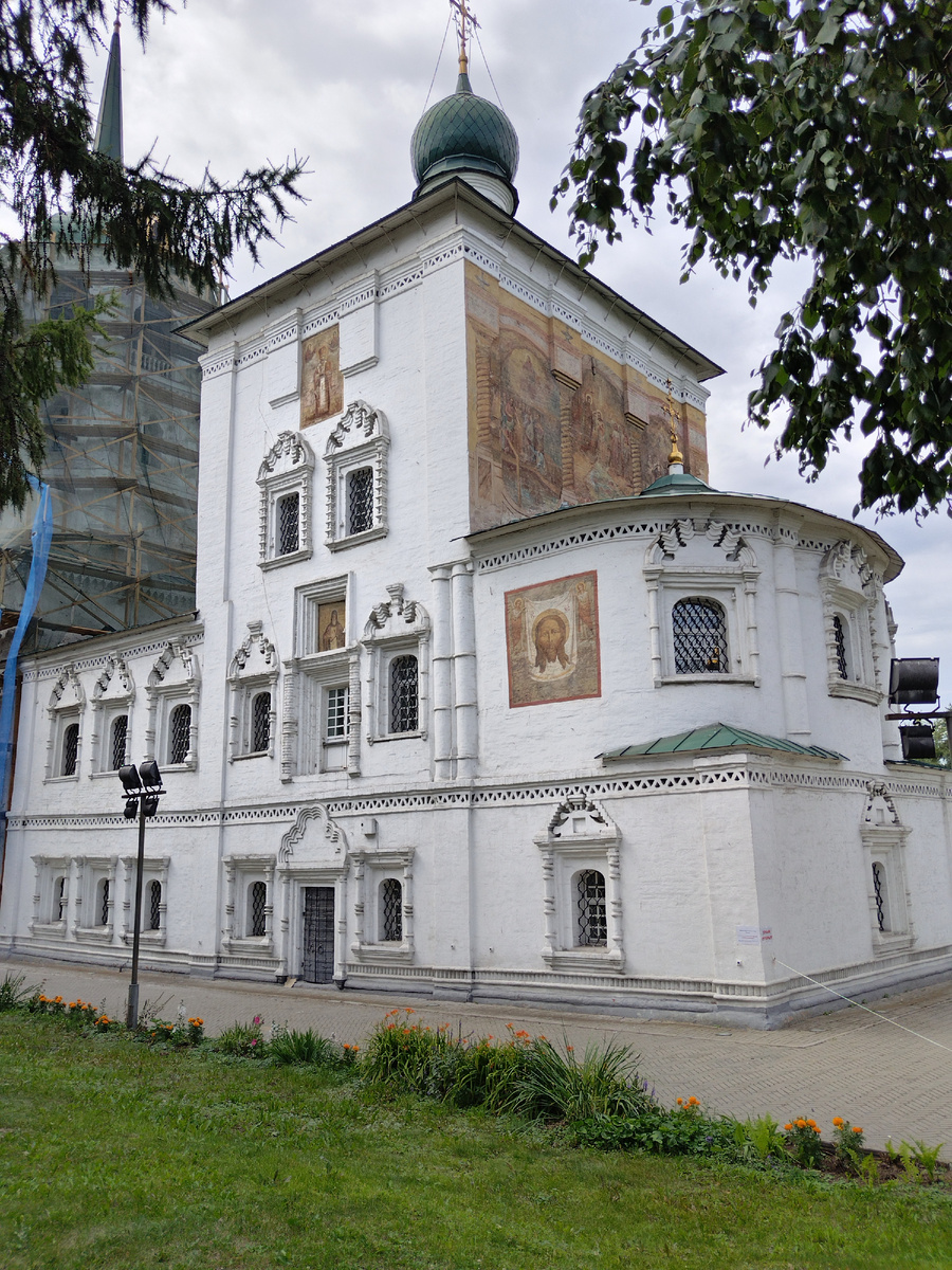 Вижу белый храм, тоже старинный, иду смотреть. Жаль что внутрь храма я попасть не смогла, храм был закрыт. Церковь Спаса 1710г. Единственная церковь в Сибири, на внешних стенах которой имеется роспись. Закрыли церковь в 1931г, и хотели снести, в ней размещались, сапожная мастерская, коммунальные квартиры. В 1960г вновь вернулся вопрос о сносе Спасской церкви. И эту церковь спасает Галина Оранская, вместо сноса она взялась за реконструкцию церкви. Хотя я прочитала, что внутренняя роспись была уничтожена полностью. Я увидела группу с гидом, почему не послушать. Как я поняла на месте церкви был Иркутский острог и когда стали укреплять фундамент, нашли 250 останков первых жителей Иркутского острога. Может тех кто строил этот храм. То есть на этом месте было кладбище. В это же время шла реконструкция других старинных храмов, а как мы помним из истории возле церквей находились кладбища. Все останки были захоронены в одном месте в этой крипте (второе фото). Глубина захоронения 5 м. В неё