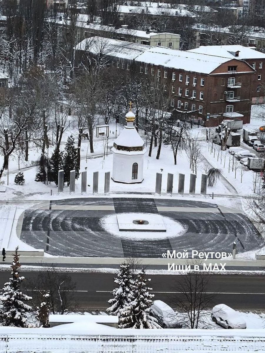 Добрый вечер. Как интересно очистили территорию от снега у Вечного огня. Похоже на диск старой пластинки.