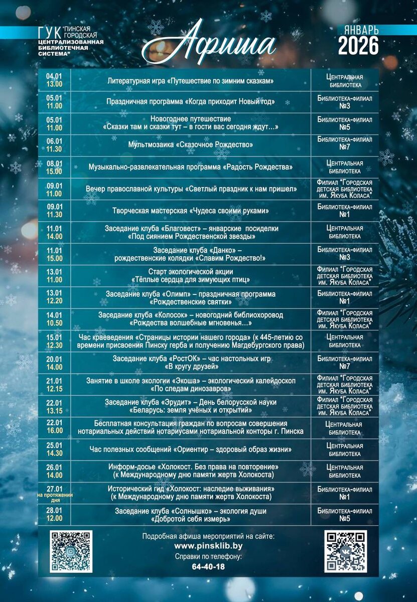 🔄Афиша ГУК «Пинская городская централизованная библиотечная система» на январь✨