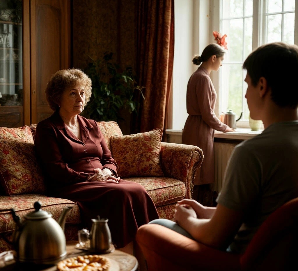 Но в этой картине была трещина. Я чувствовала её кожей с самого утра, когда свекровь, обычно скуповатая на визиты, позвонила и сказала, что зайдёт «на пять минут» и с Кириллом. Они сидели уже третий час. Кирилл, обычно разговорчивый, был как-то неестественно молчалив, перебирал бахрому на диванной подушке. Галина Петровна, напротив, была подчёркнуто оживлена, хвалила мой пирог чаще, чем обычно, и её взгляд, острый и оценивающий, скользил по нашей гостиной, будто заново пересчитывая каждый предмет.