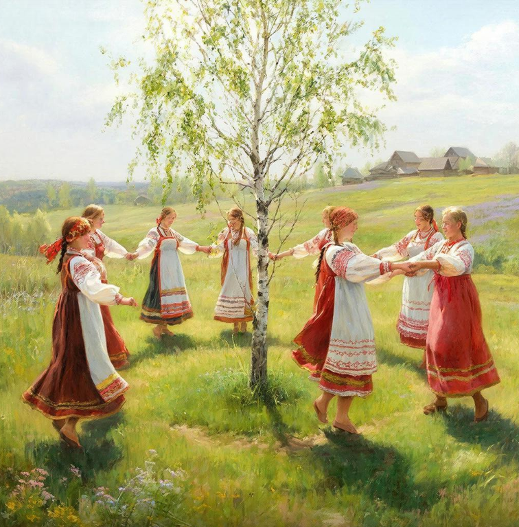 ▌ Вихрь времён: женский хоровод вчера и сегодня В древние времена русская земля жила не только трудом да заботой, но и особой магией обрядовых танцев – женскими хороводами. Эти круговые движения словно объединяли всех участниц в единое целое, открывая им доступ к древним знаниям и энергии природы. Под ритмичный напев звучали голоса девушек и женщин, переплетаясь в таинственный узор гармонии и красоты. ▌ Таинство древнего круга Хоровод всегда был символом единства и порядка, он соединял людей между собой невидимыми нитями судьбы и наполнял пространство особыми вибрациями. Когда женщины собирались вместе, чтобы водить хороводы, они не просто двигались по кругу, а входили в особое состояние сознания, где могли соприкоснуться со своей внутренней силой и мудростью предков. Круг олицетворял солнце, символ плодородия и обновления, и каждая женщина ощущала себя частью этого вечного цикла рождения и смерти. Женский хоровод представлял собой не просто танец или развлечение; это было важное риту