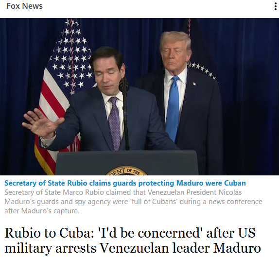 Госсекретарь США Марко Рубио дал интервью телеканалу Fox News и наговорил много интересного. 🔸Он подчеркнул, что администрация Трампа не ведет войну против Венесуэлы, а проводит операцию по борьбе с наркотиками. 🔸Про управление страной Рубио подчеркнул, что «это не оккупация». Речь идет о контроле через экономическое давление. Ключевой механизм в этом вопросе — «нефтяной карантин». Руководство США продолжит блокировать поставки венесуэльской нефти. 🔸Глава ведомства послал довольно четкий сигнал правительству Кубы. «Если бы я жил в Гаване и был в правительстве, я бы встревожился», — подчеркнул Рубио на вопрос журналиста о том, является ли Куба следующей целью для Трампа. 🔸Рубио отметил, что о выборах пока говорить преждевременно, поскольку более 15-ти лет чавизма нельзя преодолеть за такое короткое время. 🔸Насчет Делси Родригес он заявил, что в США будут судить ее «за дела, а не за слова». При этом он выдвинул требования: прекращение наркотрафика, изгнание FARC и ELN, разрыв связей