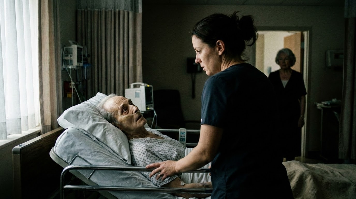 Зоя смотрела на лицо старика и не понимала. Его левое веко дёргалось неровно – последствия инсульта, объяснила жена в первый день. Но сейчас, на третьей неделе работы, она видела систему. Моргание повторялось. Три длинных. Пауза. Три коротких. Пауза. Три длинных.