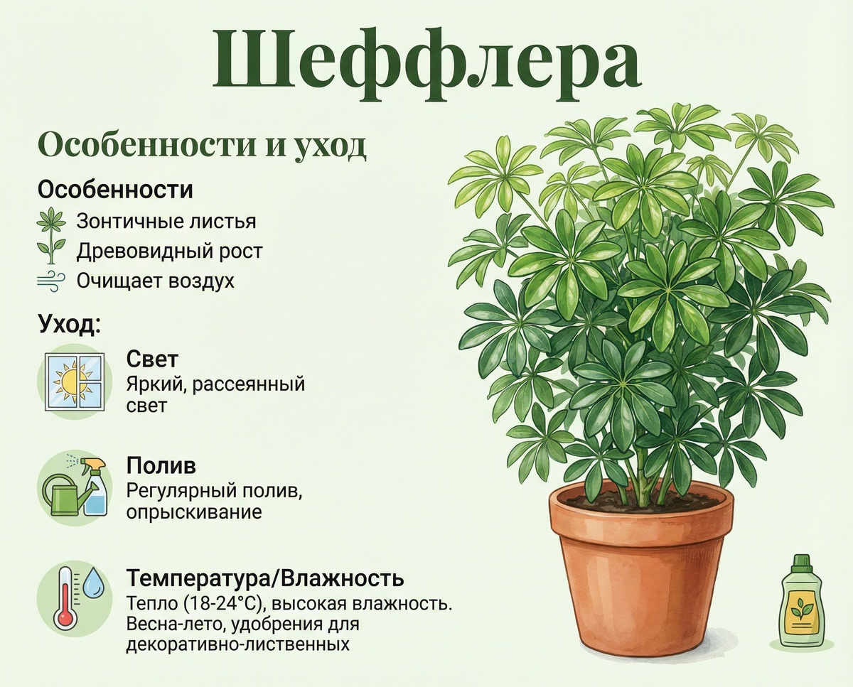Шеффлера — это элегантное тропическое растение, которое отлично вписывается в интерьер и создаёт ощущение уюта. За этим зелёным другом приятно наблюдать, но для здорового роста ему нужны правильные условия.