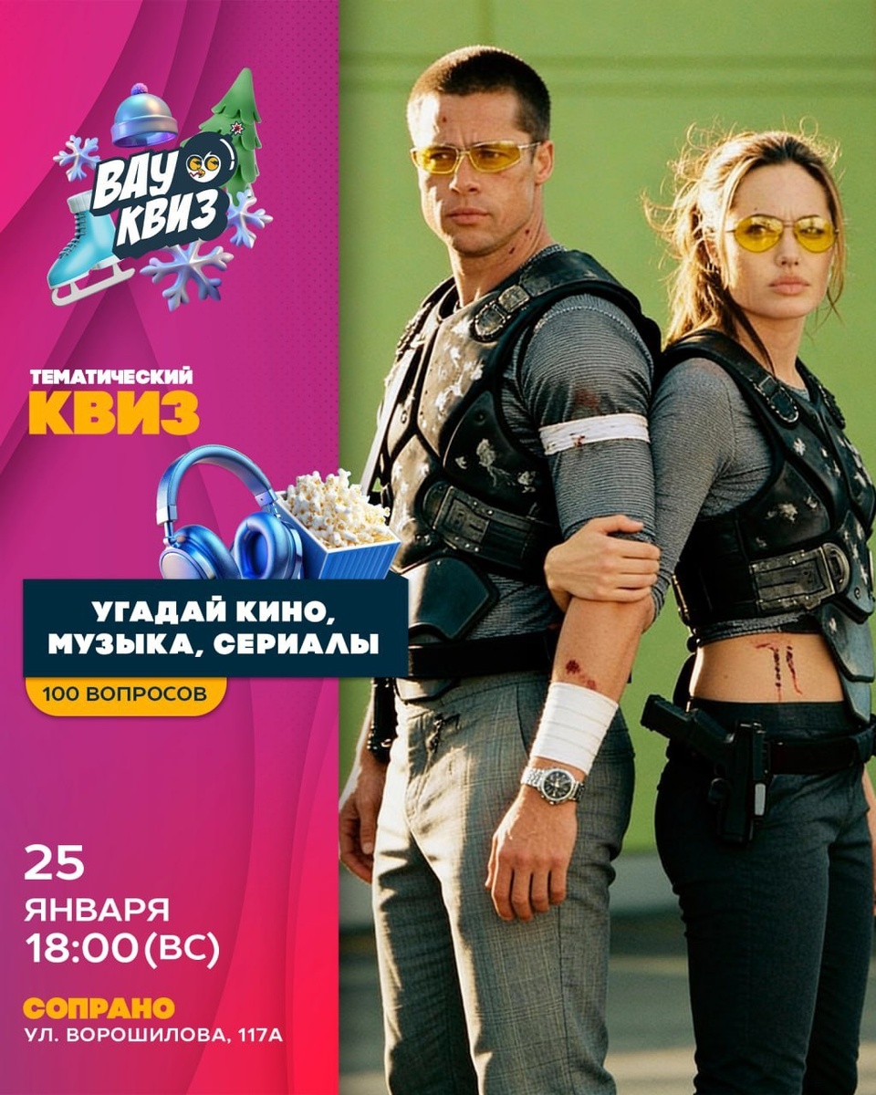 ✨ Квиз - Угадай кино, музыку и сериалы - 100 вопросов📋 Обсудить киноновинки и любимые сюжеты в уютной компании, услышим давно знакомые мелодии и взрывные хиты — и все это на одном квизе 🤩 😉Начнём с лёгкой разминки, а потом отправимся в гастротур, где вспомним самые вкусные киносцены и «застольные» хиты. Потом окажемся в зимнем туре, поиграем в том стоп-кадры. 👉Собирайте дрим тим из киноманов, меломанов и сериаломанов и докажите, что лучший вечерний досуг — это не просто смотреть и слушать, а ещё и помнить все из этого 🍿🎧 ☎️ Заявки +7 (953) 184-71-98. 📆 25.01.2026 🕒 18:00 🏢 Караоке-бар Сопрано 📍 г. Серпухов, ул. Ворошилова, 117А 💰 Цена: 500 ₽ ⭐Поддержать канал голосом ✅ Мероприятия Серпухов https://dzen.ru/id/66f01c6eb4c6fe60c9ca1608 http://vk.com/serpukhov_events http://dzen.ru/serpukhov_events