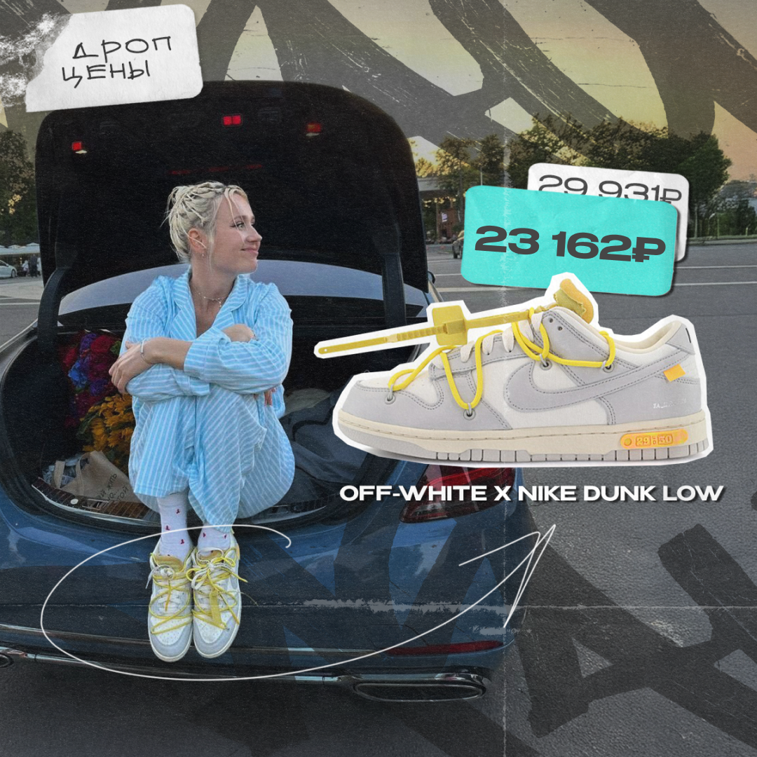 Певица разгуливает в кроссовках от двух известных брендов. Хотим быть ею, но пока что лежим в кровати и доедаем салаты. Айтем в «Дроп ценах», стоимость актуальна только сегодня. Off-White x Nike Dunk Low, цена от 23 162₽* (вместо 29 931₽) *стоимость может изменяться в зависимости от курса и размера Больше интересного на нашем сайте POIZON