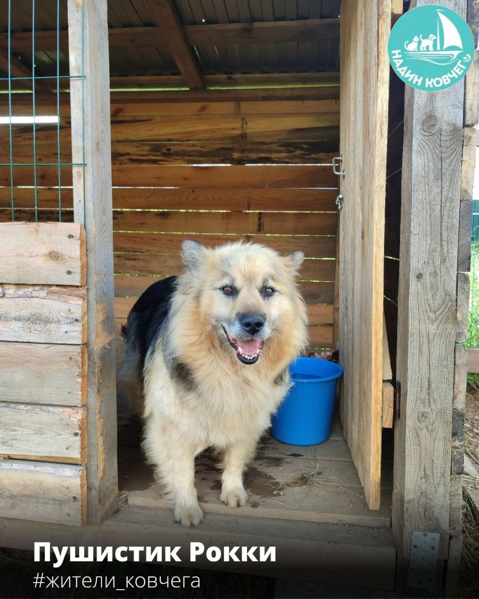 Рокки быстро набрал вес и оброс пушистой шерсткой. Пёсика так и хочется потискать. Только, увы, он совсем не ручной. На тех людей, кто регулярно появляется в Ковчеге, он может отреагировать достаточно спокойно, если проходить мимо его вольера, а вот новых посетителей будет сильно облаивать.