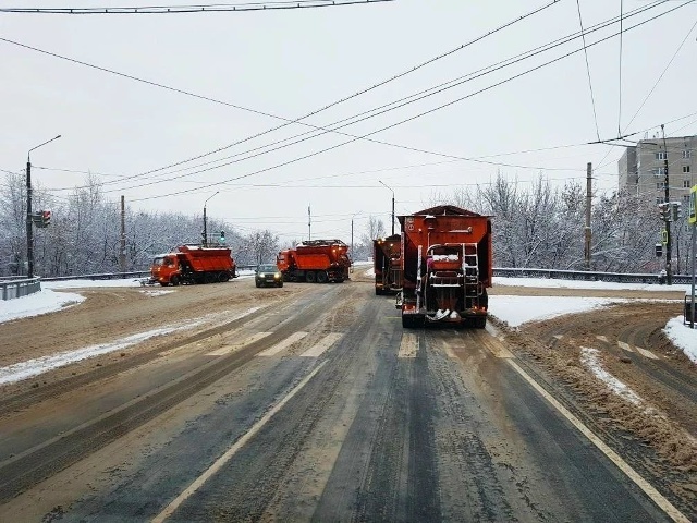 За первые дни января в Дзержинске выпала треть месячной нормы осадков. Несмотря на праздничные дни, сотрудники МБУ «Город» работают в круглосуточном режиме. На улицы Дзержинска и посёлков для уборки снега и обработки от наледи ежедневно выходит от 28 до 34 единиц техники. Около 90 человек вручную очищают и обрабатывают пескосоляной смесью остановки общественного транспорта и общественные пространства. Особое внимание уделяется уборке улиц с наибольшей интенсивностью движения: проспектам Чкалова, Дзержинского, Ленина, Циолковского, Ленинского Комсомола, Свердлова, а также улицам Гайдара, Маяковского, Черняховского, Попова, Чапаева, Октябрьской, Красноармейской, Пушкинской и центральным улицам посёлков. За первые четыре дня 2026 года использовано около 800 тонн пескосоляной смеси. Директор МБУ «Город» Юрий Мишенков объясняет, что уборка организована циклично: – Первый этап – посыпка дорог пескосоляной смесью. В течение следующих 4-5 часов лёд и снег подтаивают. После этого выходит колонн