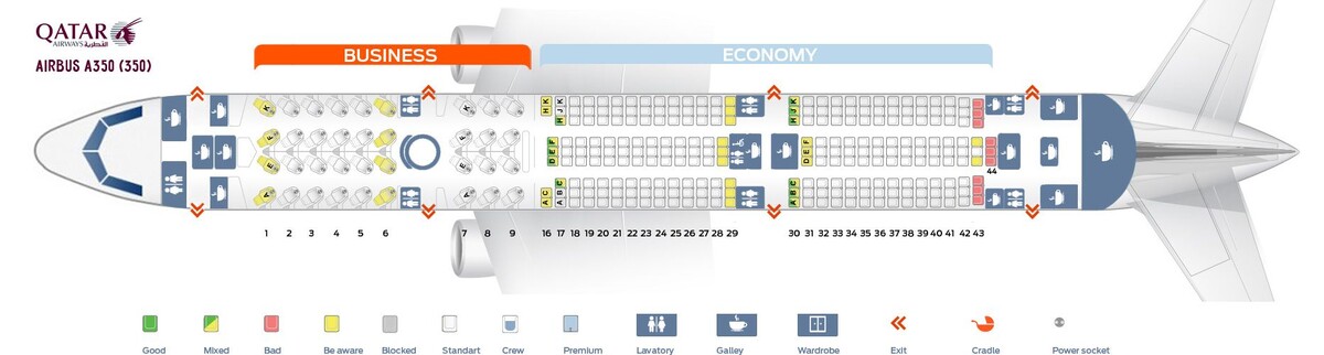 4. Соседство, которое нельзя изменить. Рядом с туалетами — вечное хлопанье дверей, очередь и запахи. Рядом с кухней-галерой — такой же поток людей и звук работы бортпроводников ночью. Смотря на схему, знайте, что спереди и в конце самолета расположены туалеты и кухня.
