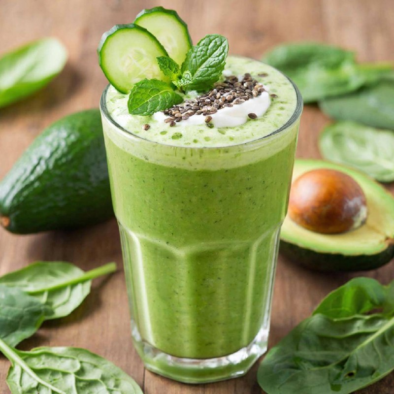 🥒 ▌ Ингредиенты: 1. Спелый банан — 1 шт. (предпочтительно замораживать предварительно нарезанный) - Источник калия и магния, улучшает перистальтику кишечника. 2. Авокадо — половинка плода - Содержит полезные жиры, способствующие усвоению питательных веществ. 3. Свежий огурец — половина среднего размера - Обеспечивает организм влагой и витаминами группы B. 4. Зелень (шпинат или петрушка) — горсть - Богата хлорофиллом, железом и антиоксидантами. 5. Семена чиа или льна — 1 ст.л. - Высокое содержание омега-3 жирных кислот и растворимой клетчатки. 6. Имбирь свежий — небольшой кусочек (~1 см) - Стимулирует пищеварение, уменьшает газообразование и тошноту. 7. Натуральный йогурт или кефир — 1 стакан - Пробиотики поддерживают баланс микрофлоры кишечника. 8. Мед натуральный — 1 ч.л. (по желанию) - Натуральный подсластитель с антибактериальным эффектом. ⎯⎯⎯⎯⎯⎯⎯⎯⎯⎯ ▌ Инструкция приготовления: 1. Нарезать банан кусочками и заморозить заранее (если используется свежим, добавьте н