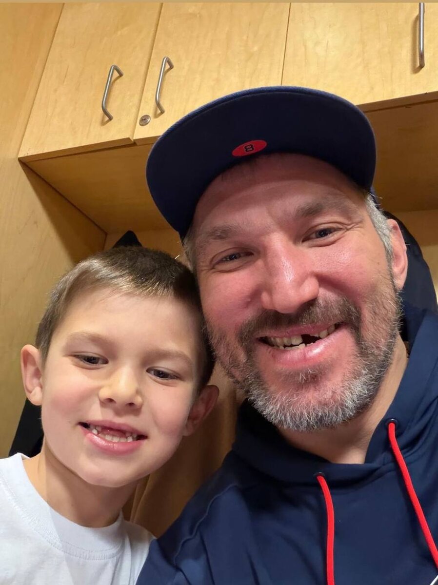 Жена хоккеиста Анастасия Шубская опубликовала забавное фото хоккеиста с семилетним сыном, на котором отчётлива заметна схожесть их «беззубых» улыбок. Правда, зубов Овечкины лишились по-разному. Молочный зуб юному Сергею выдернули во время тренировки «Вашингтона», Александру же выбили в недавнем матче с «Чикаго». @russian_rt_sport