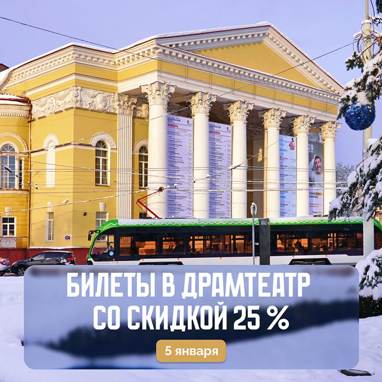 Акция действует только 5 января с 00:01 по 24:00. При покупке билетов введите промокод: ЯНВАРЬ25. Посетить можно спектакли собственного репертуара Драмтеатра с 5 января по 5 февраля. Акция не распространяется на гастрольные и арендные постановки, на подарочные сертификаты. Предложением могут воспользоваться обладатели «Пушкинской карты». Промокод действует только при покупке билетов на официальном сайте: dramteatr39.ru.