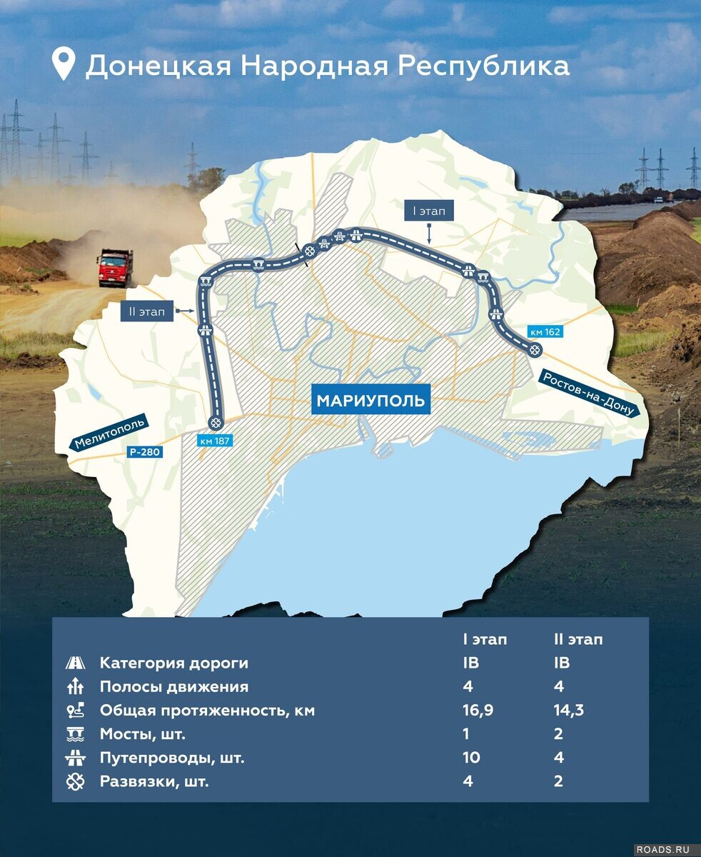 Автодорожный обход города Мариуполя в Донецкой Народной Республике строится в рамках развития федеральной трассы Р-280 «Новороссия». Это важный участок, который должен вывести транзитный транспорт за пределы городской застройки и повысить пропускную способность сухопутного транспортного коридора вдоль Азовского моря.