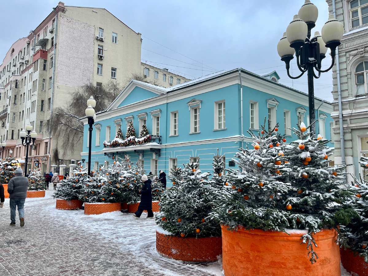Все украшение Старого Арбата посвящено мандариновой тематике. Мандарины здесь везде: на елках, в форме павильонов, в оформлении лавочек и навесов. Мы тоже решили ухватить немного мандаринового настроения. 🍊🍊🍊