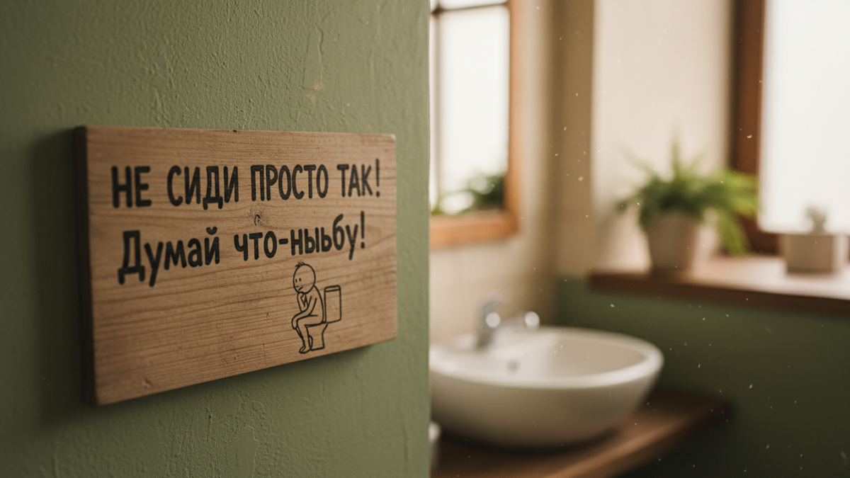 Рядом — рисунок человечка на унитазе в позе мыслителя.