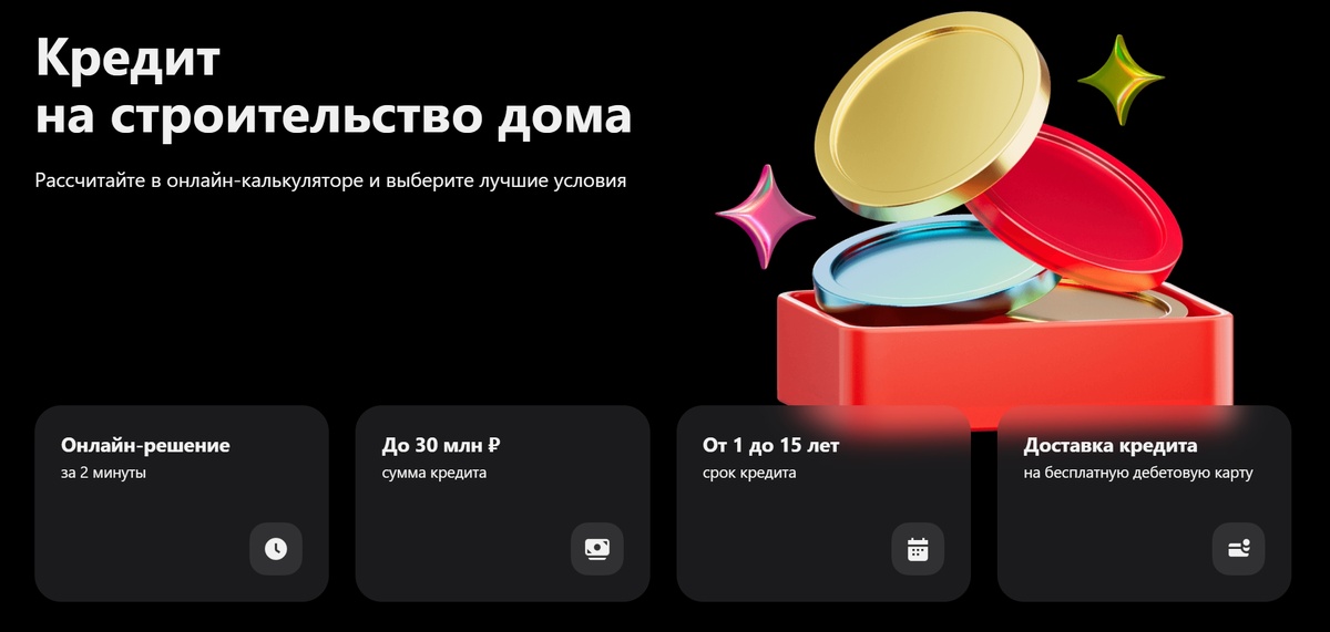 Кредит на строительство дома в Альфа-Банк — это потребительский кредит, который позволяет получить крупную сумму средств на возведение частного жилого дома, дачи или загородного коттеджа. Продукт ориентирован на клиентов, которым важно быстрое оформление, минимум документов и отсутствие обязательного залога недвижимости.