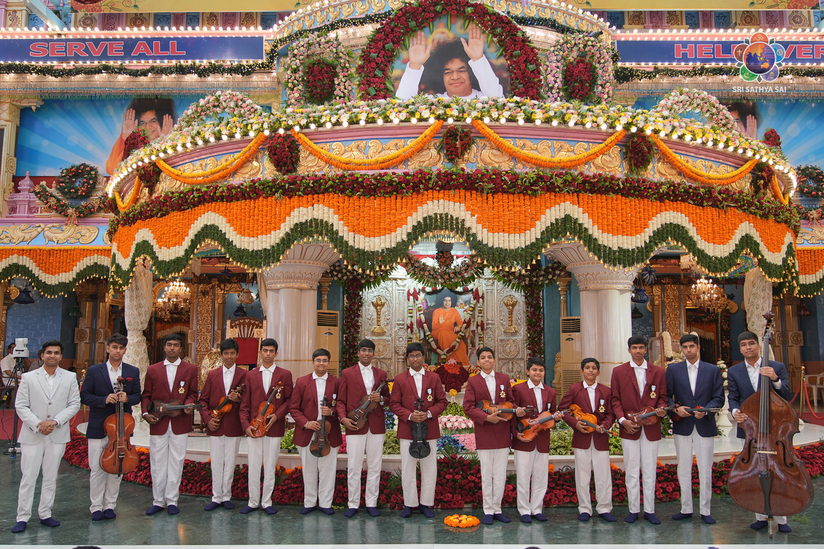 Утренние священные мероприятия начались с благодарности и празднования вступления духового оркестра института в 40-й год своего божественного служения. Представленная ими душевная программа состояла из серии прекрасных музыкальных произведений, повествующих о зарождении и росте оркестра. Выступление отражало ласковое воспитание и подготовку, которые на протяжении многих лет обеспечивали старшие студенты и преподаватели, и завершилось радостной нотой с особой новогодней композицией. Затем ансамбль Надасварам исполнил благоговейную интерпретацию крити (произведение) великого индийского композитора Тъягараджи «Эндаро Маханубхавулу», добавив утру классический и благочестивый оттенок.