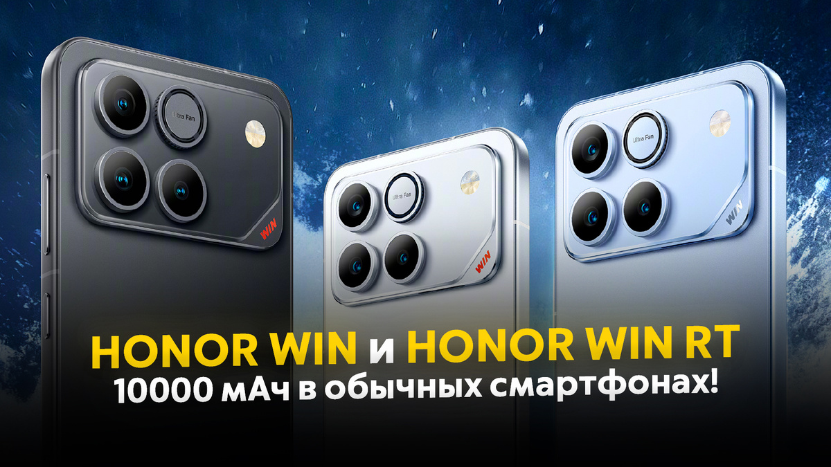 Что сделала компания HONOR, смотря на всё это? Представила две новинки с батареями аж на 10000 мАч — старшую HONOR WIN и младшую HONOR WIN RT. Для обычных смартфонов такая ёмкость — рекорд! А что вообще они умеют, сколько стоят и стоит ли их ждать в России? Поговорим обо всём по порядку.