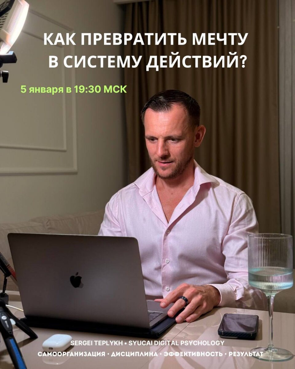 Планы остаются планами, а мечты — мечтами. 💔 Когда дело доходит до действий, всё упирается в усталость, нехватку времени и фокус на задачах «в моменте», а не на стратегии. СЕГОДНЯ В 19:30 МСК • ВЕБИНАР ⏏️КАК ПРЕВРАТИТЬ МЕЧТУ В СИСТЕМУ ДЕЙСТВИЙ⏏️ Без мотивации и вдохновения. С чёткой логикой, структурой и понятными шагами. На вебинаре разберём: — почему вдохновение не работает и чем его заменить — как перевести абстрактные желания в конкретные действия — как выстроить систему самоорганизации, где результат появляется без надрыва и давления Если вы устали начинать сначала, если хотите не «попробовать», а реально сдвинуться с точки, этот вебинар для вас. Присоединяйтесь к закрытому чату — ссылка на вебинар будет там 👉 https://t.me/+F6YVrsoYIGkwMjYy
