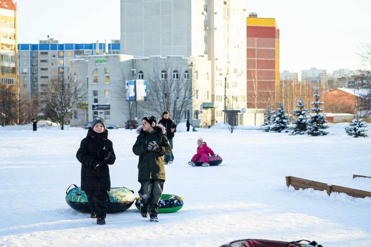 Около школы №59 рядом с новой тюбинговой горкой для ребят и взрослых сотрудники Дома искусств «Ритм» устроили зимние забавы. Игры, танцы, музыка – так проводят каникулы на свежем воздухе мальчишки и девчонки. Как отмечают сами ребята, им очень понравилась тюбинговая горка и они с удовольствием с неё катаются. 📷 Фото: Рина Горлова. «ГИ» в МАХ | ВК. Подписывайтесь! ✔️