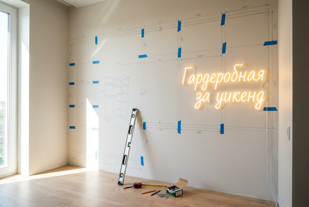 При грамотном планировании установка гардеробной за один уикенд - реальная задача даже для новичка.