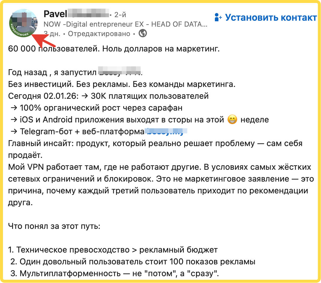 Интересный опыт, если он честный. Правда у человека бейджик что он ищет работу, но делится тем, что его vpn имеет 30к платящих пользователей.
