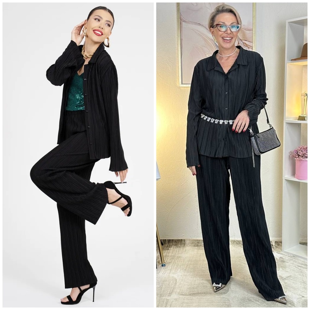 Здравствуйте, дорогие читатели! Меня зовут Ирина, я - стилист, и на этом канале показываю одежду и аксессуары с Wildberries такими, как они есть, то есть, из серии "ожидание/реальность". Мои параметры: рост 169 см, вес 67 кг, 94-74-100 Ставьте лайк в поддержку канала, и давайте смотреть на мою сегодняшнюю покупку. Мой отзыв о костюме гофре: блузка и брюки (продаются отдельно) Этот костюм — моя безоговорочная любовь и лучший спутник в поездках. Идея покупать блузку и брюки по отдельности позволяет создать цельный образ, а можно смело разбивать комплект на две самостоятельные и невероятно стильные вещи. Блузка: романтика и практичность Эту блузку хочется назвать волшебной. Её главная магия — в материале и крое. Ткань гофре (жатка) из полиэстера — это находка. Она абсолютно не мнётся, что для струящейся вещи — редкое и бесценное качество. Фактура в мелкий рубчик и лёгкий атласный блеск делают её нарядной, но не кричащей. Крой свободный, в стиле оверсайз, что обеспечивает полный комфорт и