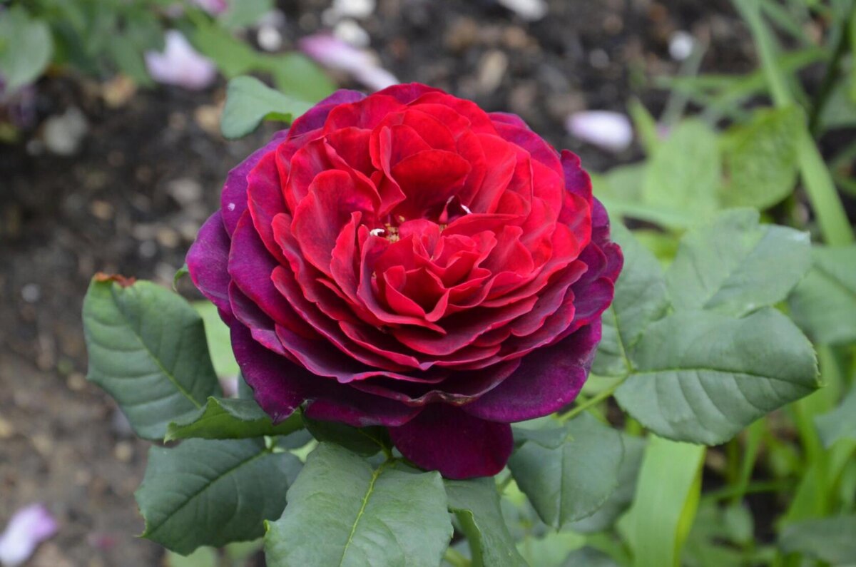 Роза получилась не большой , высота около 1 метра , ширина 60 см . примерно . Побеги прямые , крепкие , шипы есть . Цветок : бордово-фиолетовый ,к середине переходит в красный , получается магия цвета , при этом лепестки бархатные и очень приятный аромат ! Цветок при полном открытие показывает серединку , форма цветка напоминает старинные розы . Цветок очень плохо переносит осадки , это просто беда , поэтому его жизнь полностью зависит от погоды , не будет осадков будет держаться неделю , если дожди ,то цветение пропало . Размер цветка 9-11 см . , часто цветы бывают в соцветии , тогда цветок мельче .